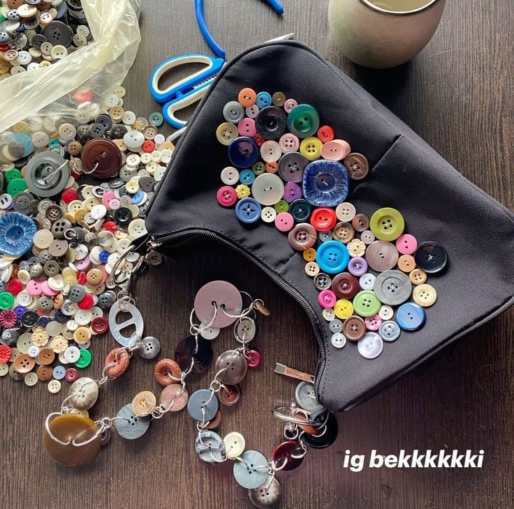 Source a handful of novelty buttons from Facebook Marketplace or an op shop, find a sturdy old fabric bag, and sew to your heart’s content. No sewing machine required. Just a needle, thread, and the perfect cosy afternoon in.