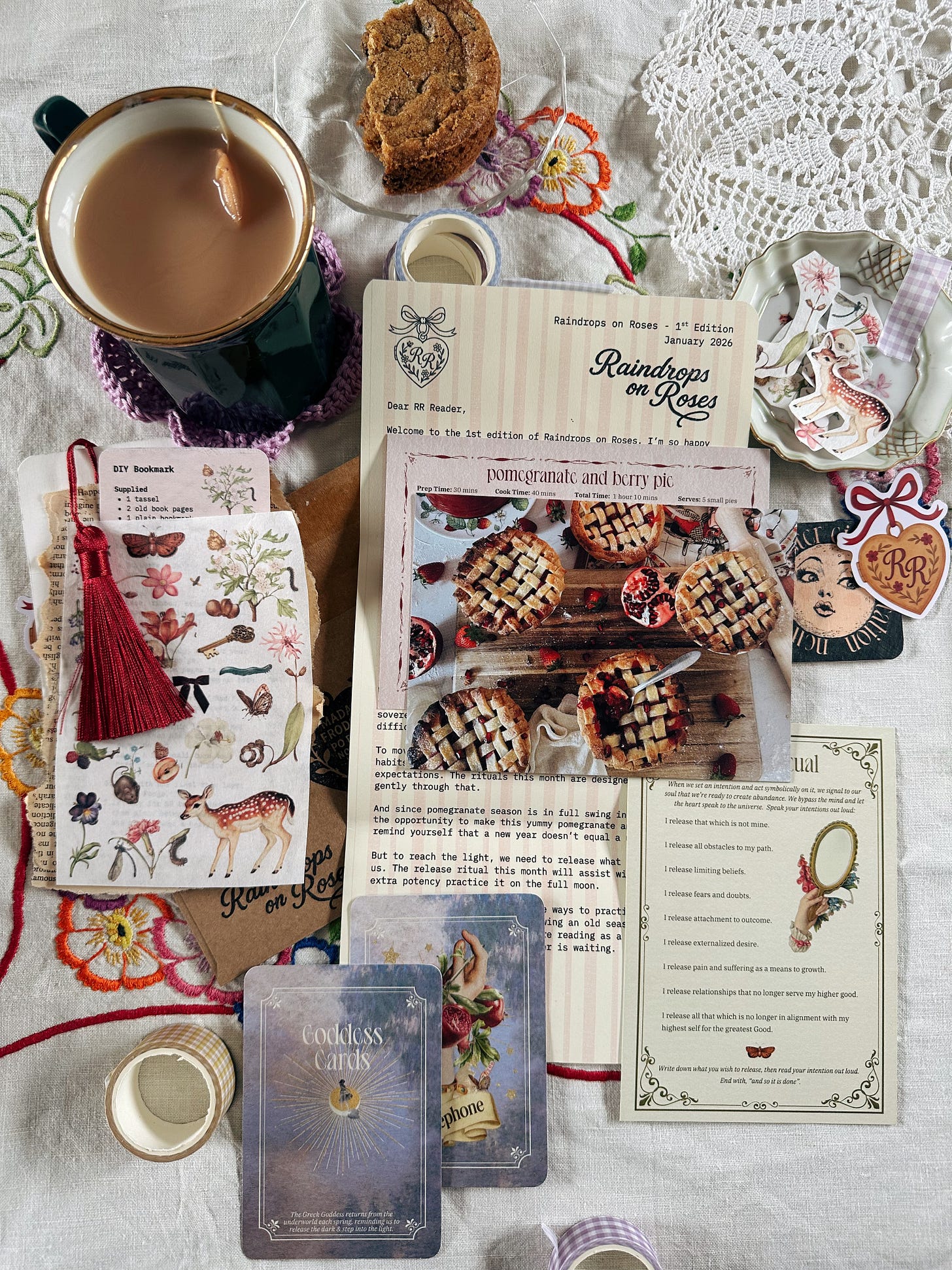 Sign up to a snail mail club. Let something arrive just for joy. Save the stickers and postcards for next month’s junk journal. I love Raindrops on Roses (my own hehe), Alex Gold, Cosy Mail Club, Craftaholic’s, Analog Club, and Lemon Drop Press.