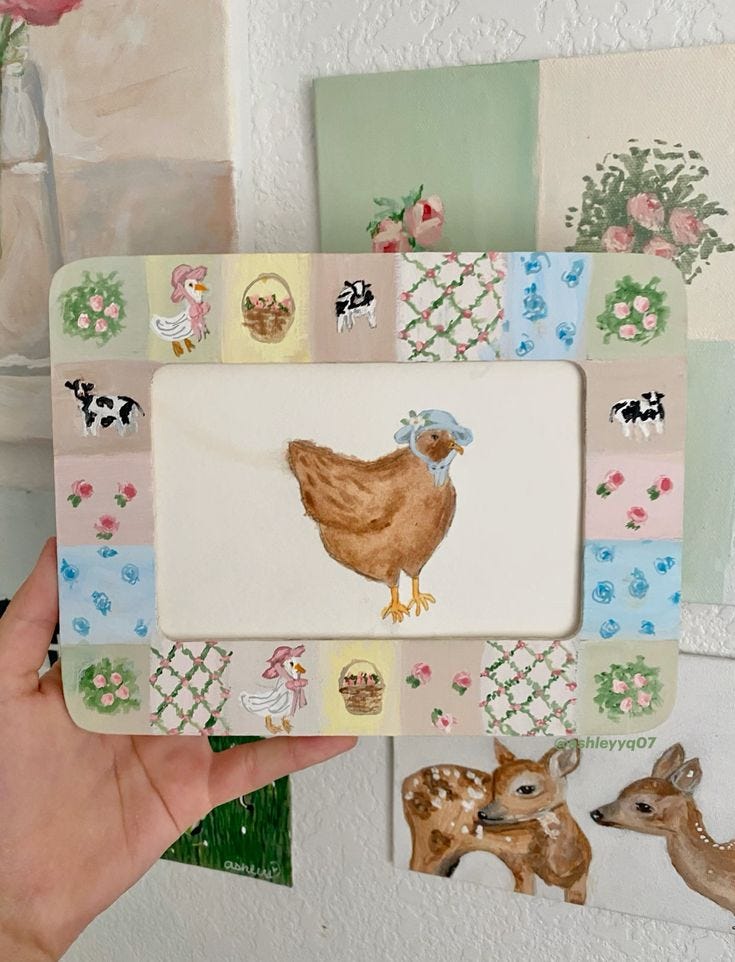 Take Polaroids of your favourite people or pets and make paper clay photo frames to house them. Or, if you don’t like people, paint a hen wearing a bonnet.