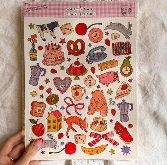 Start a collection. Stickers, stamps, coins, pressed flowers, novelty salt and pepper shakers. I love the stickers from Martina’s Tiny Store. What did you love collecting as a kid before everything had to be useful or productive?