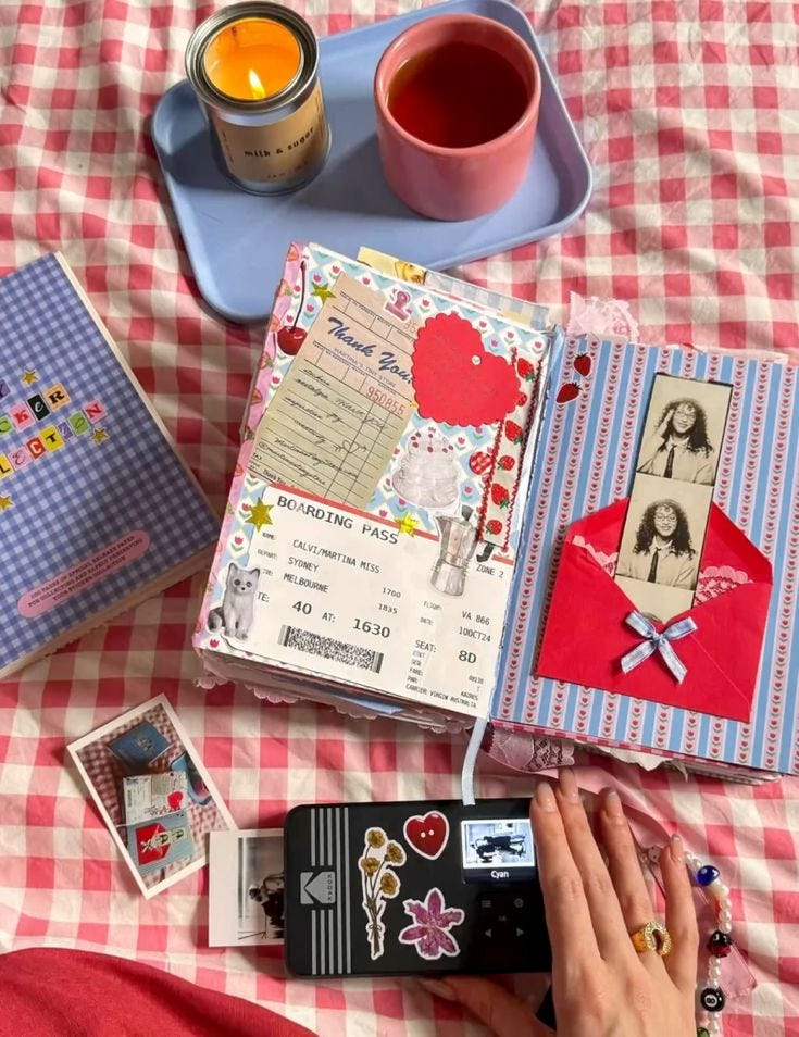 I have been noticing it emerge quietly. Girls at my local neighbourhood pool flipping through paperbacks, requests from friends to come over and make beaded anklets for summer, invitations to cosy board game nights, conversations at the dog park lingering longer then usual… realising that me and just about every girlie is planning to make junk journalling our new years resolution.